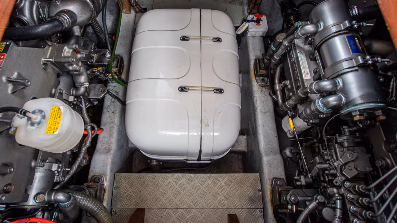 Twin Yanmar 4LHA STP 240 hp diesels. Shaft drive with stainless prop shafts, fixed four blade propellers and water lubricated bearings. Sidepower bow thruster. Mastervolt Whisper 6000 generator with 138 hours. Webasto diesel heating and Crusair reverse cycle air conditioning. Electric bilge pumps with alarms. Engine hours approx 358 and 369.